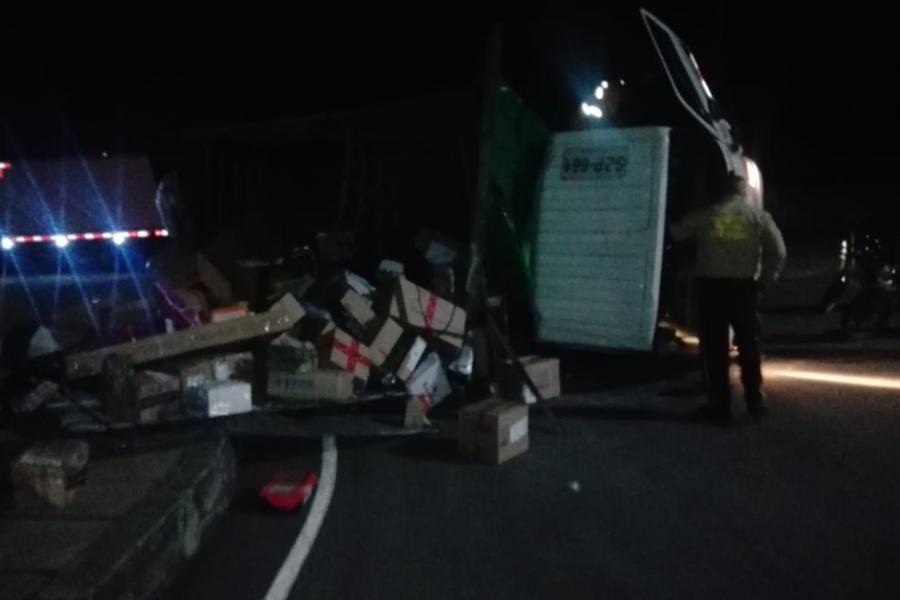 Según se pudo establecer, el accidente involucró a un vehículo de carga pesada tipo turbo el cual terminó a un costado de la carretera volcado de forma lateral, luego que su conductor perdiera el control por circunstancias aún desconocidas.