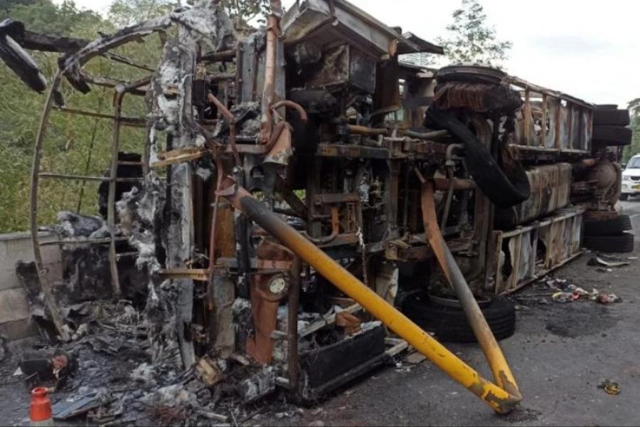 Loa grave emergencia se presentó la noche del viernes 16 de julio a la altura del barrio Uribe Uribe por la variante de la ciudad Ibagué, donde un bus se volcó y resultó incinerado en medio de la colisión.