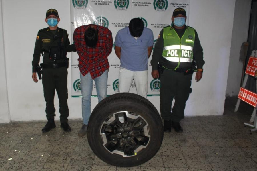 Según se conoció, la acción operativa se desarrolló en la calle 42 con carrera octava en jurisdicción del barrio Calarcá, donde fueron capturados en flagrancia dos hombres de 27 y 43 años de edad, quienes se movilizaban en un vehículo particular en el cual llevaban una llanta de repuesto que habían hurtado minutos atrás.