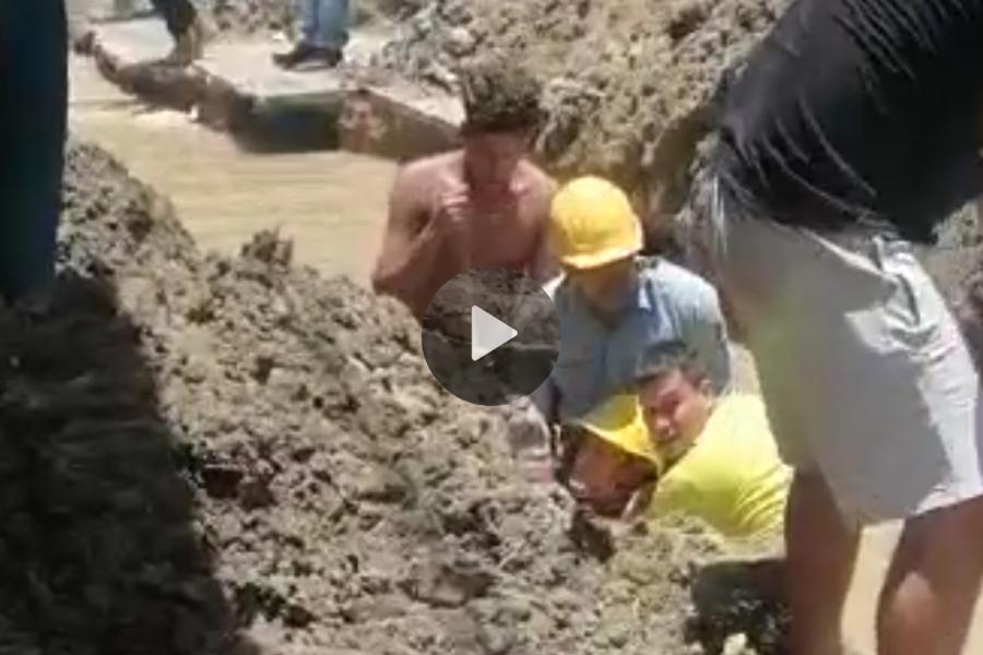 Información revelada a esta redacción, indica que mientras estaban en su labor una de las paredes del socavón al parecer cedió y terminó atrapando a dos de los obreros que milagrosamente quedaron con su cabeza en la superficie.