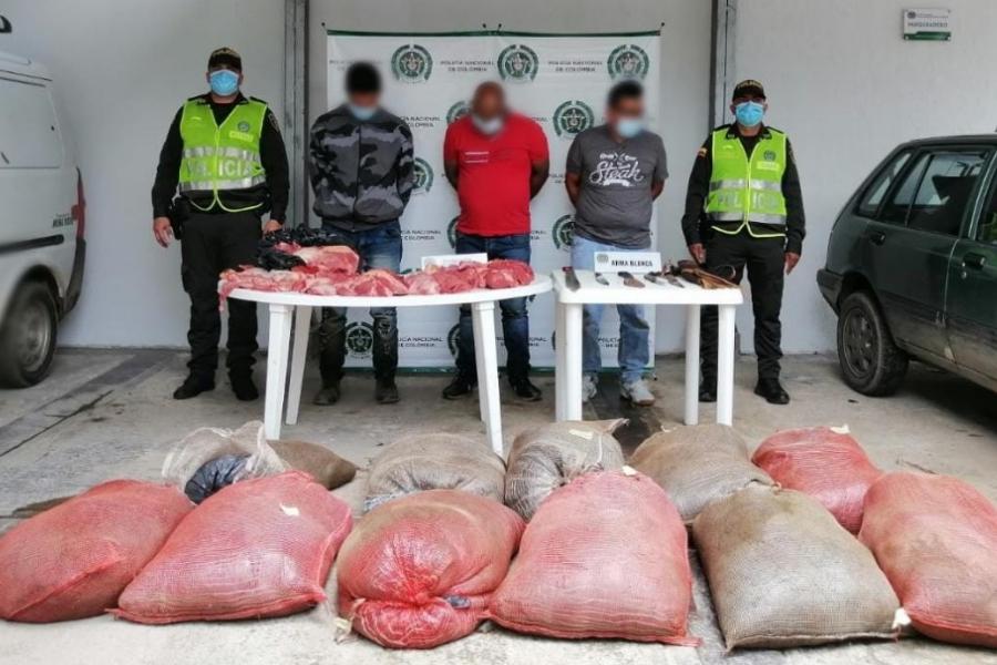 Según se pudo establecer, una vez llegaron los uniformados hasta la vereda Campo Alegre identificaron dos vehículos particulares en los que tenían al menos 600 kilogramos de carne de res, producto del sacrificio y hurto de siete semovientes que pertenecían a dos fincas.