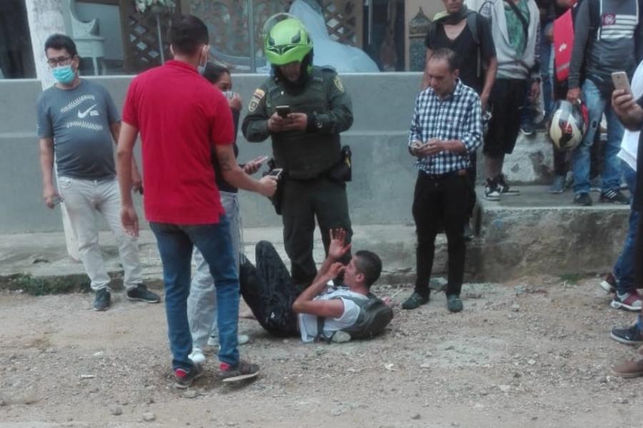 El caso de justicia a mano propia se registró en horas de la tarde de este lunes en el sector de la calle 27 con avenida Ambalá, donde la misma ciudadanía logró la detención de una pareja que se movilizaba en una motocicleta y quienes al parecer habían cometido un caso de atraco.