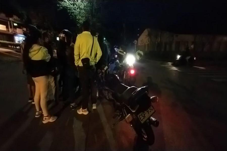 Un gran susto se llevaron los conductores y pasajeros de motocicletas que transitaban alrededor de las nueve de la noche, del pasado miércoles 17 de noviembre, sobre la calle 69, en inmediaciones del colegio Niño Jesús de Praga. Al parecer la moto identificada con placa ZHF12C no realizó el respectivo PARE con el tráfico que viene por el carril ascendente de la avenida Ambalá y terminó impactando de frente con la moto identificada con placa ESP93C.