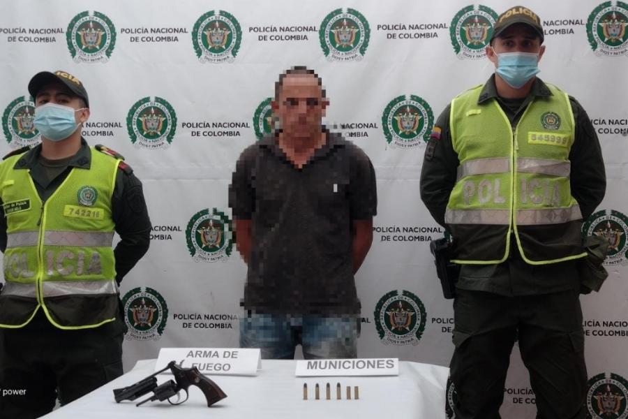 Fue así que de inmediato se activó un plan de búsqueda y localización del hombre, de tal forma que los uniformados llegaron a la vereda Las Cristalinas, donde lograron su captura en flagrancia al establecer que esta persona tenía en la pretina del pantalón un arma de fuego tipo revólver calibre 38 con 6 cartuchos para el mismo.