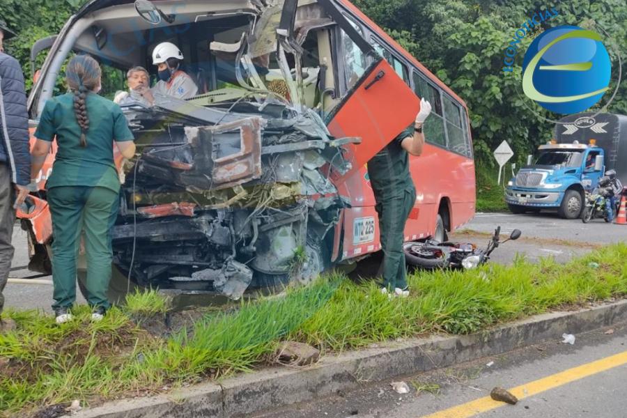 Al lugar tuvieron que llegar los Bomberos y tripulantes de varias ambulancias, quienes en coordinación con la Policía, lograron rescatar al conductor y evacuarlo junto con los otros lesionados hasta las instalaciones de la Clínica Asotrauma.