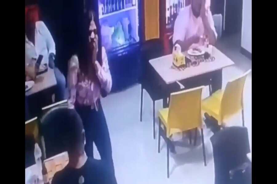 En un establecimiento comercial, al parecer cafetería, un sujeto se encontraba compartiendo con una mujer y a su vez entablando un diálogo. Después de un tiempo prudente, la charla se torna intensa, donde el hombre se altera y agrede a la femenina.