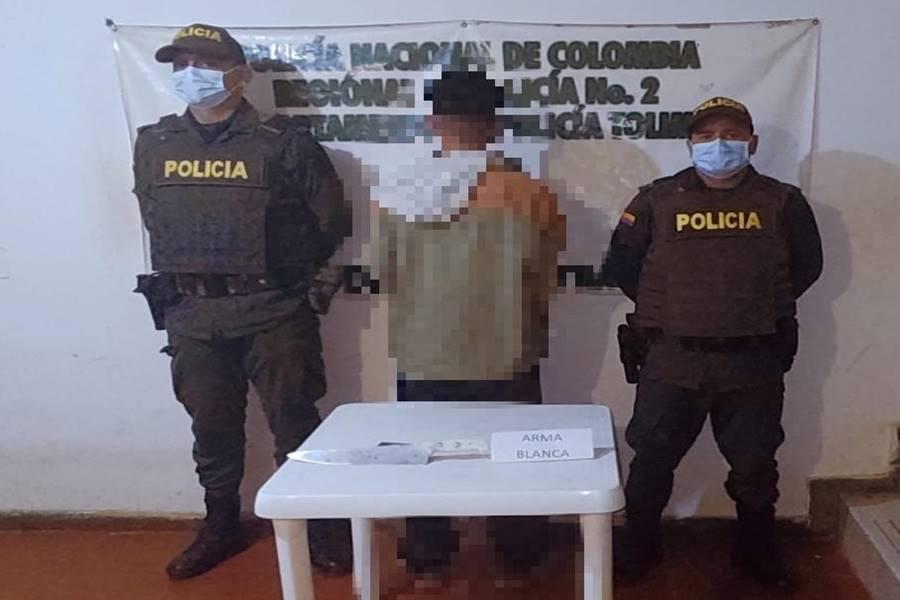 El capturado y arma blanca fueron dejados a disposición de la Fiscalía 24 seccional de Chaparral, por el delito de violencia intrafamiliar, el cual después de audiencia virtual fue enviado con detención domiciliaria.