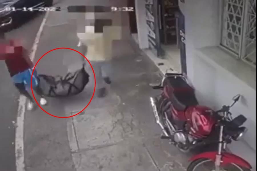 Imágenes del momento en que el hombre sacó el cuerpo de la mujer en una maleta