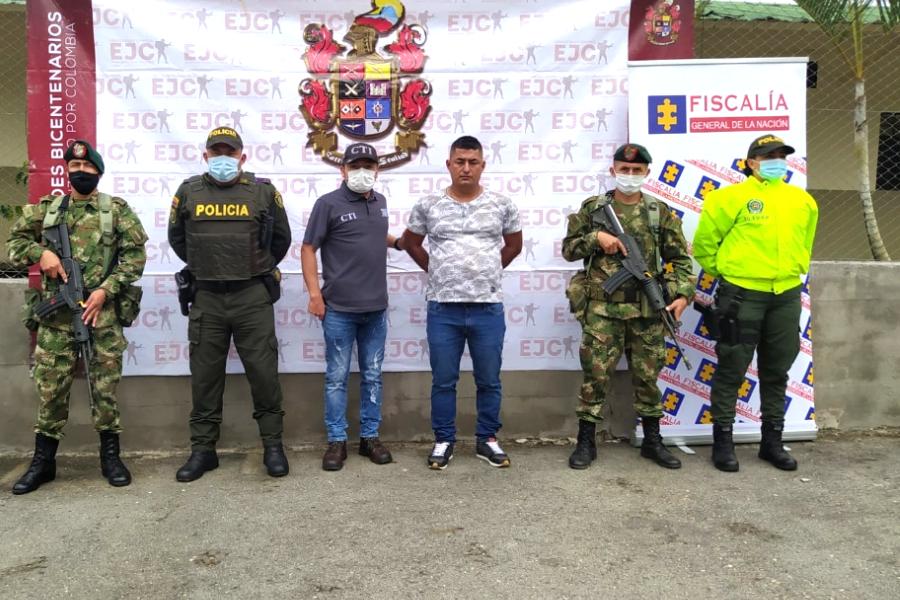 Caicedo fue capturado en un procedimiento realizado por funcionarios del CTI de la Fiscalía, con apoyo de unidades de la Policía Nacional y el Ejército Nacional, en Planadas, sur del Tolima.