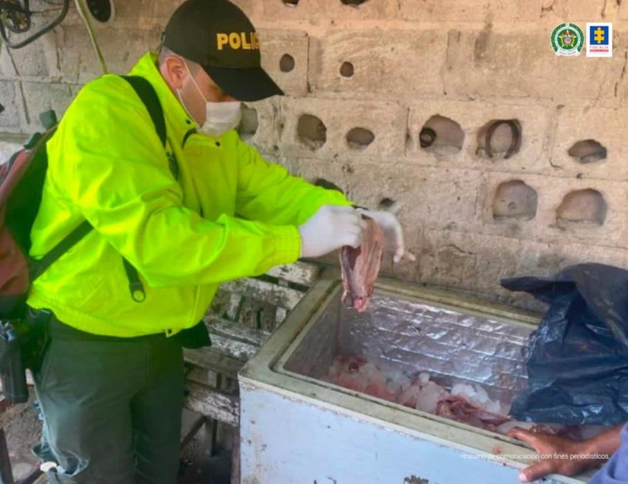 La Fiscalía y la Sijin de la Policía Nacional, con apoyo de las autoridades ambientales de la Alcaldía de Barranquilla, hicieron efectiva una orden de registro y allanamiento en el inmueble. En el lugar se encontraron 70 kilogramos de piel de caballo y burro, además dos congeladores en pésimas condiciones con cerca de 100 kilogramos de carne y vísceras de equino.
