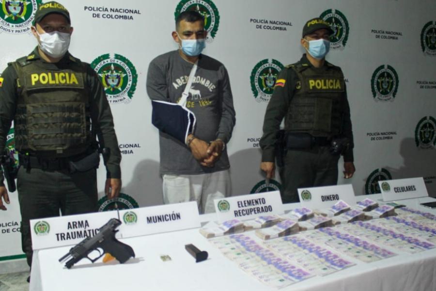 Al seguir el recorrido de la buseta con las cámaras de seguridad, los uniformados pudieron detener el vehículo para requisar a los pasajeros, encontrando al delincuente que llevaba una suma superior a los 49 millones de pesos.