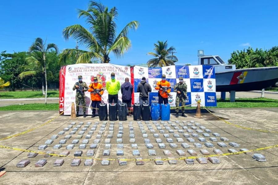 Una vez se logró la recuperación de los bultos, el material y el personal fue transportado hasta las instalaciones de la Estación de Guardacostas de Urabá, donde en coordinación con la Policía Nacional se realizaron las Pruebas de Identificación Preliminar Homologadas – PIPH, arrojando positivo para 141 kilogramos de clorhidrato de cocaína y 993 gramos de marihuana. En la operación además, fueron incautados equipos de comunicaciones y 97 galones de gasolina.