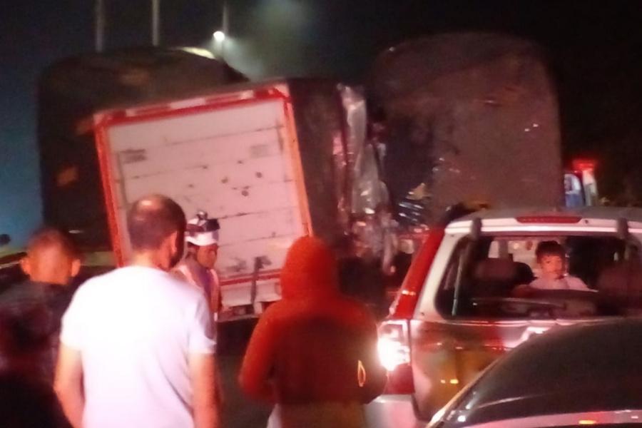 Y es que algunos conductores lograron retratar con sus equipos de telefonía celular la monumental congestión vehicular que se registró en esta importante vía, producto de lo que fue este aparatoso accidente de tránsito.