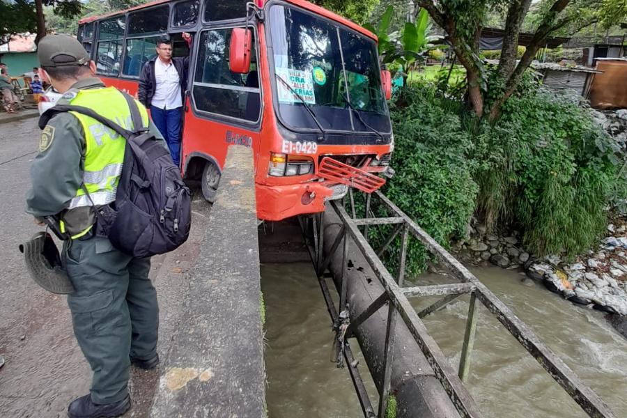 Información suministrada a esta redacción de forma preliminar, indica que el conductor de la buseta de Expreso Ibagué perdió el control del vehículo, de tal manera que terminó por subirse al andén, golpear el puente y quedar ad portas de caer al río.