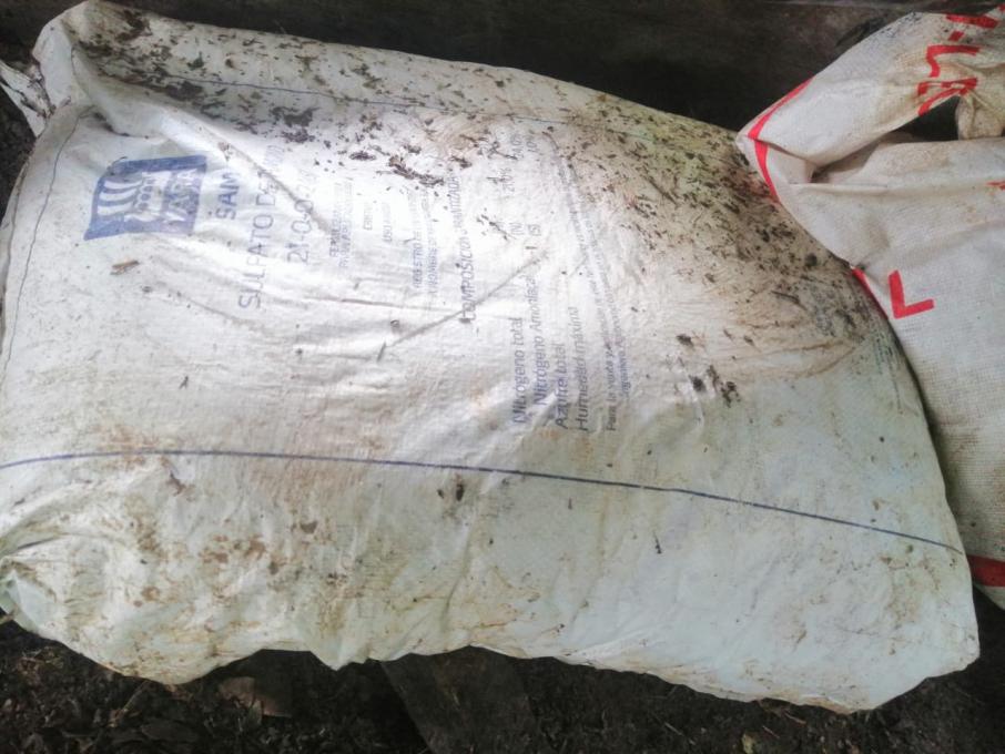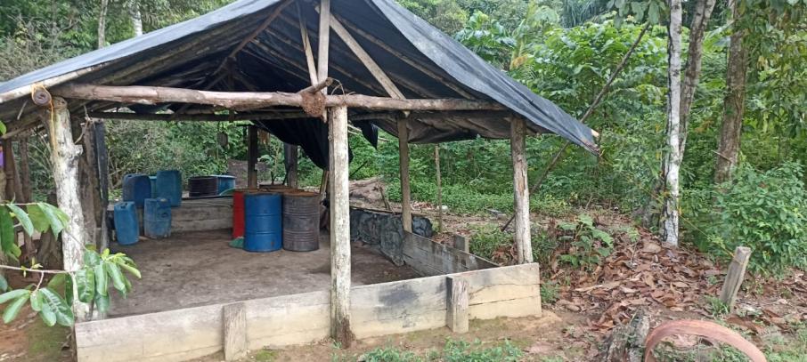 Las autoridades hallaron al interior de las estructuras 519 kilogramos de insumos sólidos entre ellos hoja de coca picada, cemento, cal, permanganato de potasio, sulfato de amonio, pasta base de coca y 2.158 galones de insumos  líquidos, así como una guadaña, tres básculas y tres prensas artesanales.