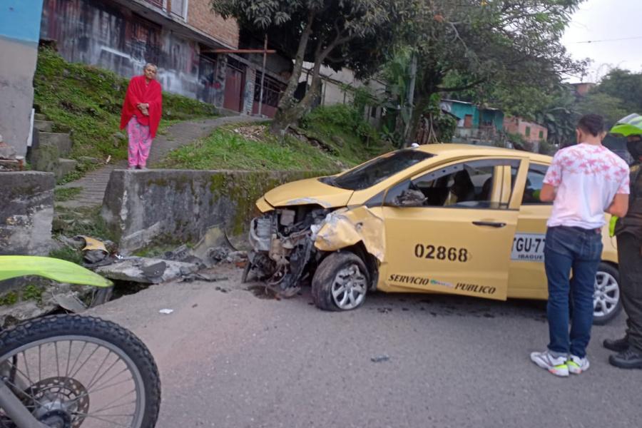 El caso se registró esta mañana en la vía que conecta al barrio Combeima con el sector de la Vuelta del Chivo y el terminal de transportes, luego que un conductor de taxi perdiera el control del vehículo y terminara colisionando contra un muro.