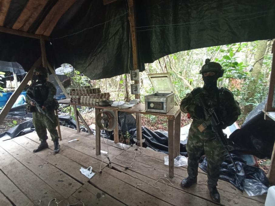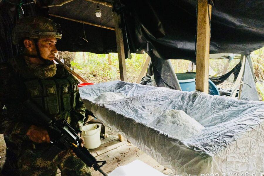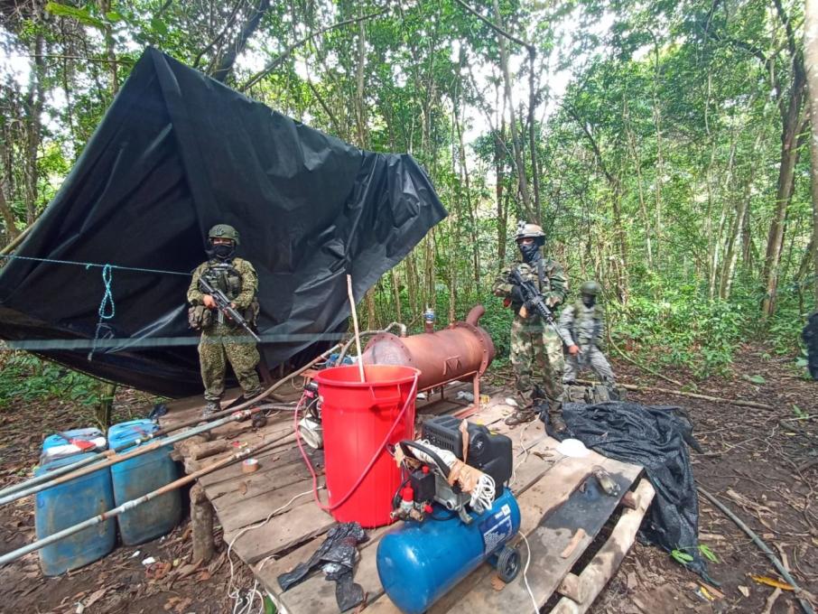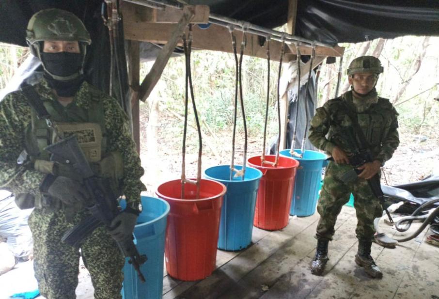 La Fuerza de Tarea Conjunta de Estabilización y Consolidación Hércules, en una operación articulada con el Ejército Nacional, la Armada Nacional e interinstitucional con la Fiscalía, ubicaron y destruyeron un laboratorio utilizado para la producción de clorhidrato de cocaína que al parecer pertenecería al Grupo Armado Organizado Iván Ríos.