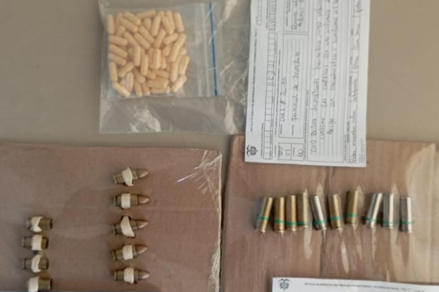 Fue así que en medio del procedimiento de Policía, los uniformados le encontraron en el interior del maletín 60 cápsulas de bazuco, 10 vainillas percutidas calibre 38 y 09 proyectiles de pistola 9 mm.