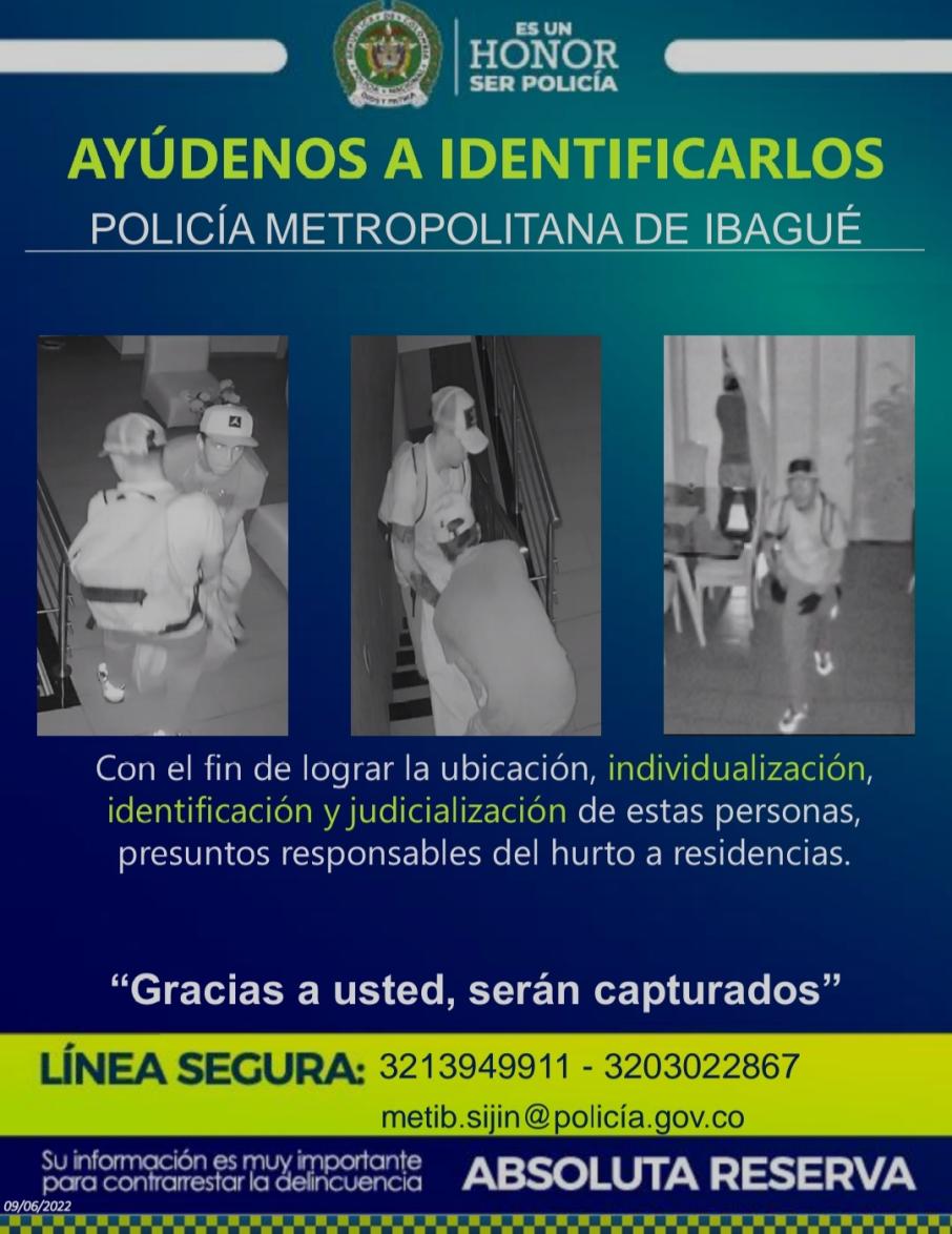 Un nuevo cartel informativo fue revelado en las últimas horas por parte de la Policía Metropolitana de la ciudad de Ibagué, en el que se indica la presunta responsabilidad de dos sujetos en la comisión de algunos casos de hurto.