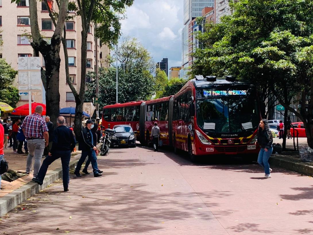 Un tremendo trancón se presenta a esta hora en la Avenida de las América sector de la Aguas, en el centro de Bogotá, debido a que un descarado conductor de un carro particular, dejó su auto parqueado en una de la principales vías por donde transitan los buses articulados del Transmilenio.