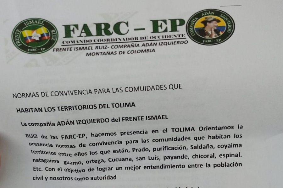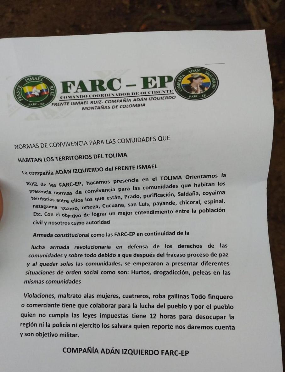 Por ejemplo en el norte del Tolima se conoció de varios de estos documentos, pero luego de un par de días las autoridades determinaron que no tenían fundamento y por el contrario eran elaborados por delincuencia común para generar temor.