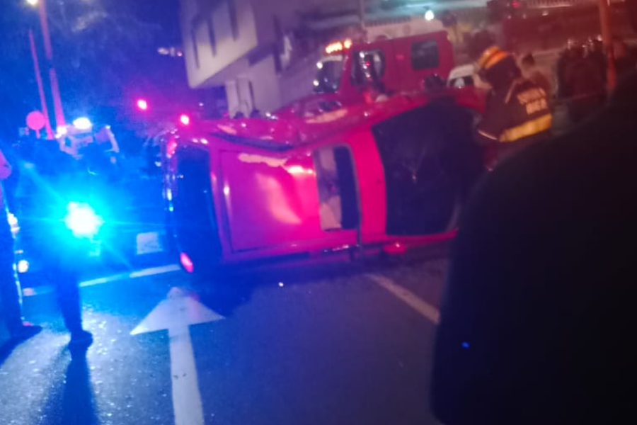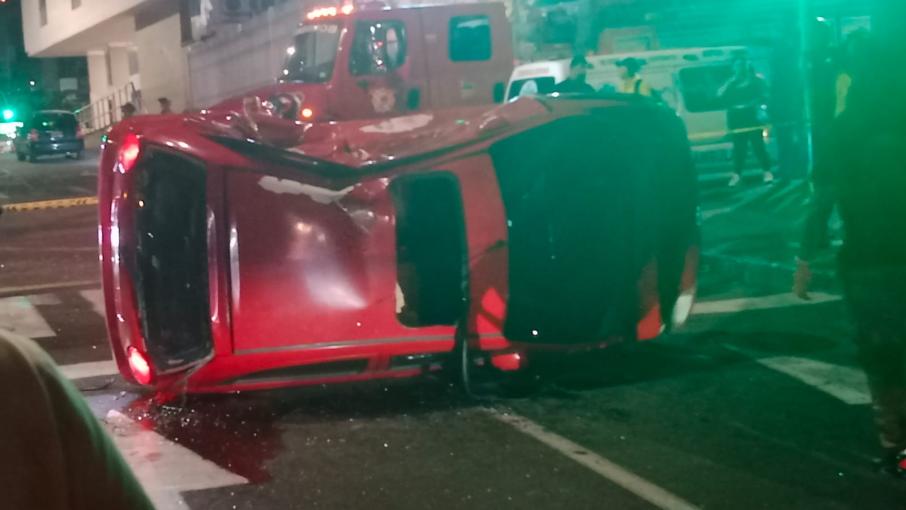 Información suministrada por las autoridades indica que derivado del impacto de la camioneta BMW de placas FQR-108 con un automóvil de placas AZZ-054, generó que este último terminara volcado lateralmente.