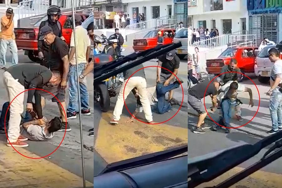 Se trata de un caso de justicia por mano propia en donde un grupo de hombres en horas de la tarde de este martes 30 de agosto, habrían capturado al presunto ladrón en el sector de la calle 27 con carrera quinta, luego que este aparentemente acabara de cometer un atraco a mano armada contra una mujer.
