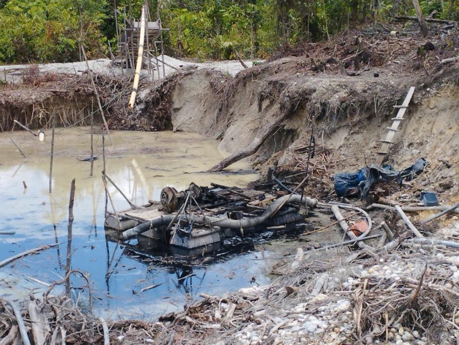 De esta manera, se ubicaron y destruyeron de forma controlada siete dragas que estaban siendo utilizadas para la minería ilegal, 12 motobombas, tres unidades de producción minera y herramientas para la extracción de oro, que provocó la deforestación del bosque, además del desplazamiento de la fauna, la contaminación de fuentes hídricas y daños en el suelo y subsuelo, producto de esta actividad.