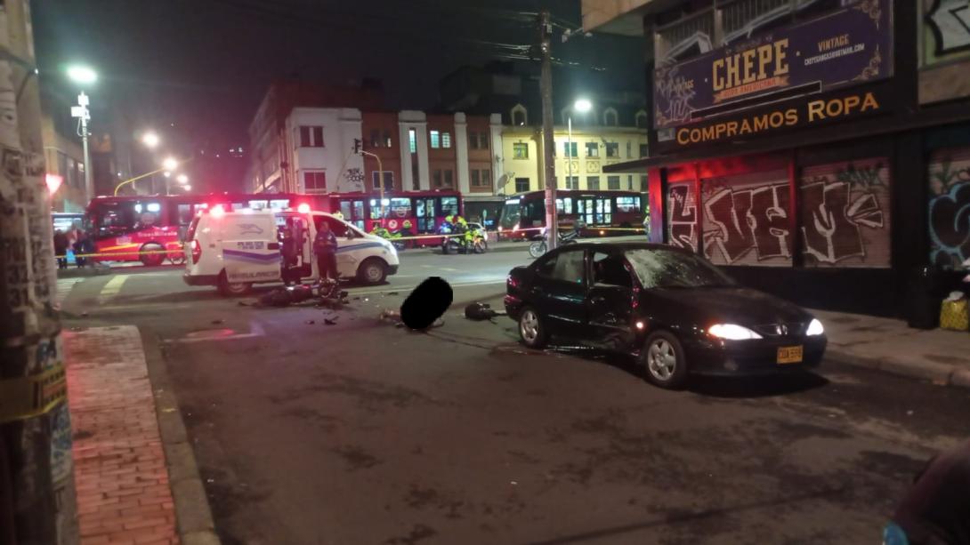 Latas retorcidas, pedazos de farolas, un olor fuerte a gasolina y manchas de aceite en el piso, fue lo que quedó del tremendo accidente que se presentó en el sector de la Avenida Caracas con calle 60, localidad de Chapinero, donde un motociclista perdió la vida de forma brutal.