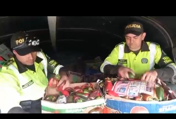 Los uniformados al observar el pesado automotor, le sacaron la mano para una requisa de rutina y lo detuvieron en la zona, al verificar el vehículo, que cubría la Ruta La Plata(Huila)- Bogotá, se le lograron encontrare al interior de unas cajas con (Pimentones) y en forma de ocultamiento 124 paquetes prensados envueltos en papel vinipel, color negro, un peso aproximado 740 kilos de una sustancia vegetal de color verde con características y olor similares a la Marihuana.