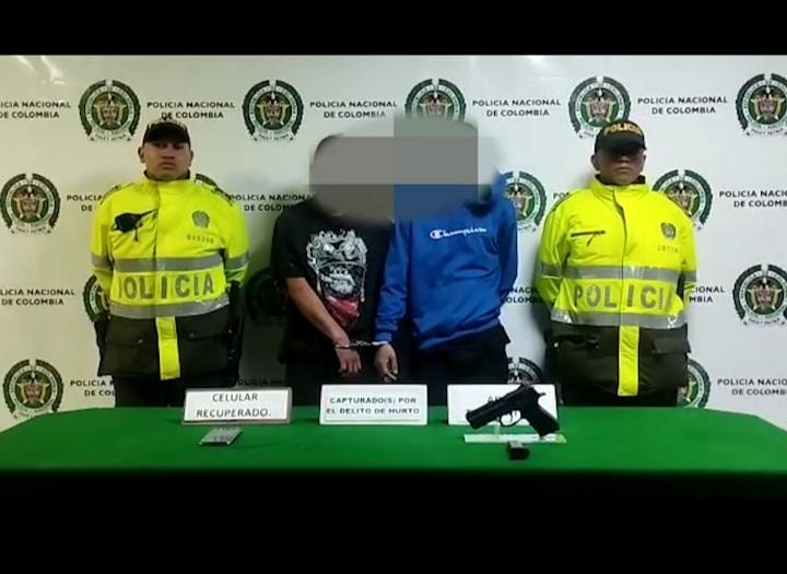 Estos dos individuos fueron capturados y están listos para llevarlos a prisión, así lo dio a conocer el coronel John Frank Buitrago Gonzales, oficial de inspección de la Policía de Bogotá.