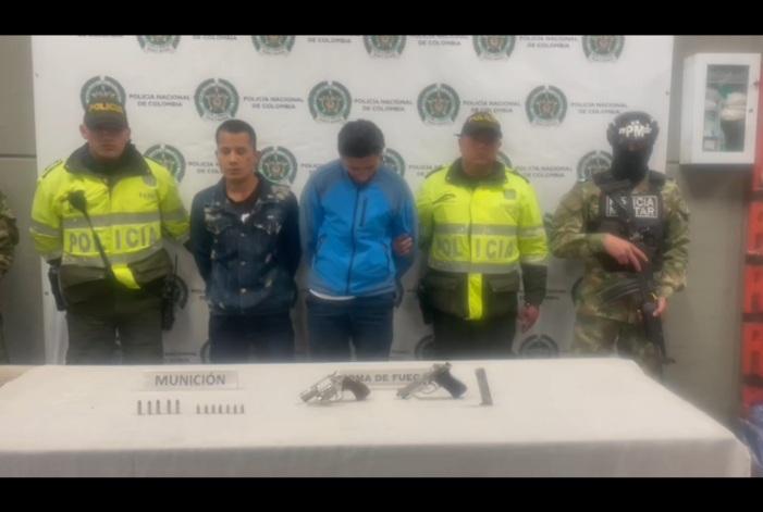 El teniente coronel Germán Darío Sáenz oficial de Inspección de la Policía de Bogotá, dijo que los siete capturados fueron puestos buen recaudo de las autoridades por el delito de fabricación, tráfico, porte o tenencia de armas de fuego.