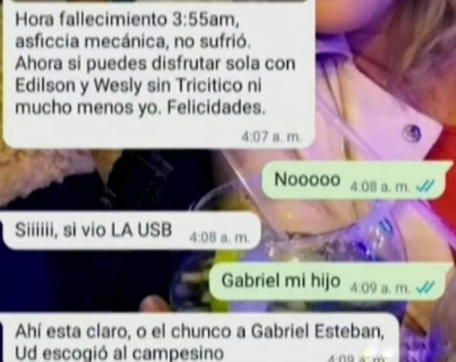 "No sufrió, ahora sí puedes disfrutar sola con Edilson y Wesly, sin Tricitico ni mucho menos yo. Felicidades", dice el chat que hace parte del material probatorio. En la conversación se establece que el deceso habría sido sobre las 3:55 de la mañana.