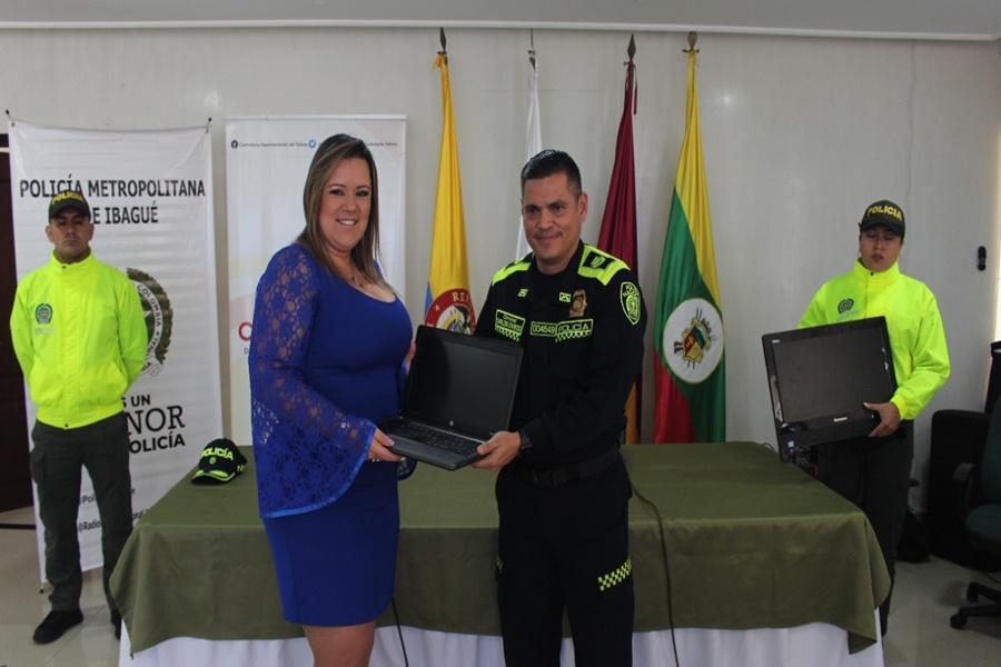 En horas de la tarde de este miércoles 5 de octubre el Coronel Carlos Oviedo hizo efectiva la entrega de los elementos hurtados a Carolina Giraldo Velásquez, Contralora del Tolima.