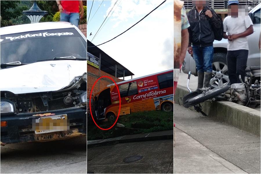 ¡De milagro no hubo heridos! Bus de Comfatolima al parecer se desengranó y estrelló dos vehículos