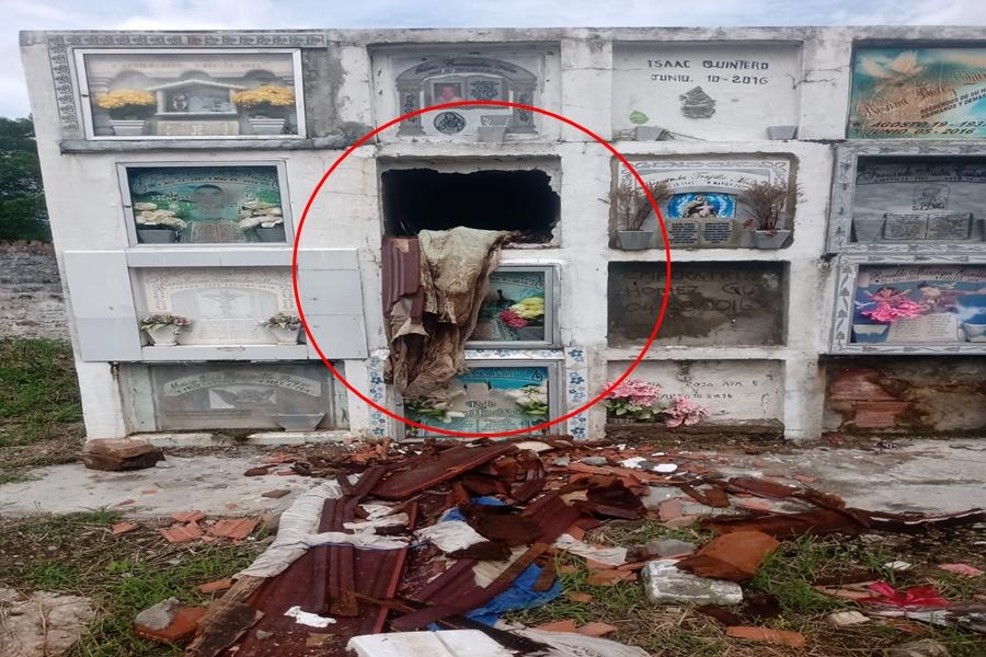 Foto: tumba profanada en el cementerio del municipio de Prado.