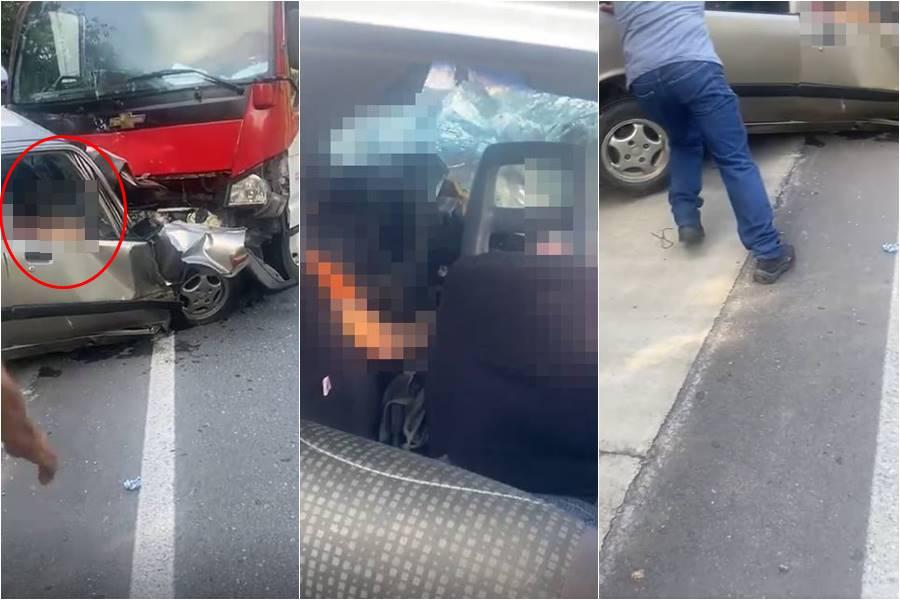De momento no se ha podido establecer las identidades de las dos personas involucradas en el accidente, ni tampoco el número de placa del carro, pero si se pudo apreciar a través de videos compartidos en redes sociales que el vehículo particular es un Chevrolet Sprint, de color beige, con relación al segundo vehículo involucrado al parecer es un camión adscrito a una empresa de mensajería.