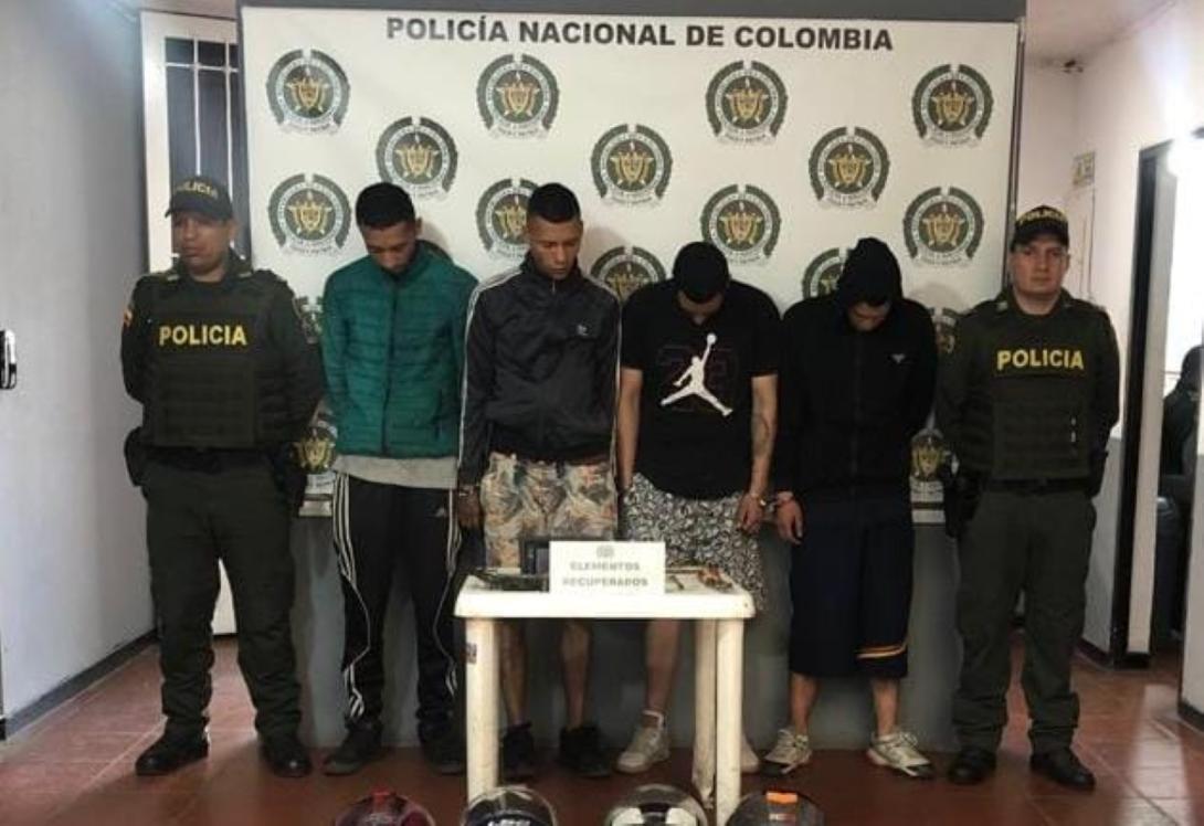 En desarrollo de las actividades propias de las patrullas del Modelo Nacional de Vigilancia Comunitaria por Cuadrantes, la Policía Nacional en La Mesa, lograron interceptar cuatro personas que se movilizaban en motocicletas y quienes momentos antes, habían hurtado varios equipos de vehículos como computadores y radios, en el barrio Las Ceibas de esta municipalidad, fueron capturados por los policías.