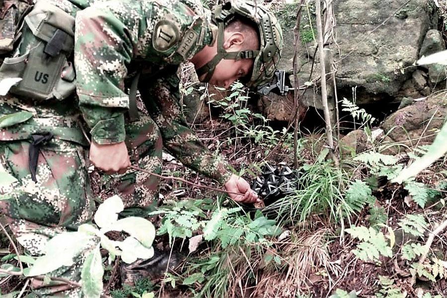 Tropas de la Fuerza de Tarea Vulcano siguen trabajando por la seguridad de los colombianos, esta vez en una ofensiva contra la criminalidad el Ejército de Colombia encontró un pequeño depósito de minas antipersona.
