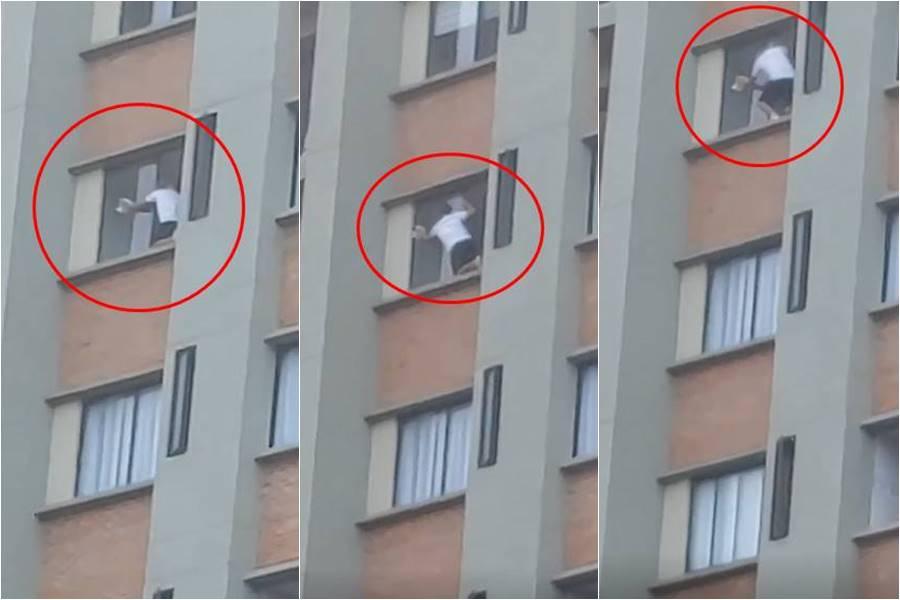 En la tarde de este viernes 13 de enero se hicieron viral unas particulares imágenes captadas en la ciudad de Ibagué en donde un hombre fue sorprendido cuando realizaba una peligrosa maniobra desde el noveno piso de un reconocido conjunto residencial.