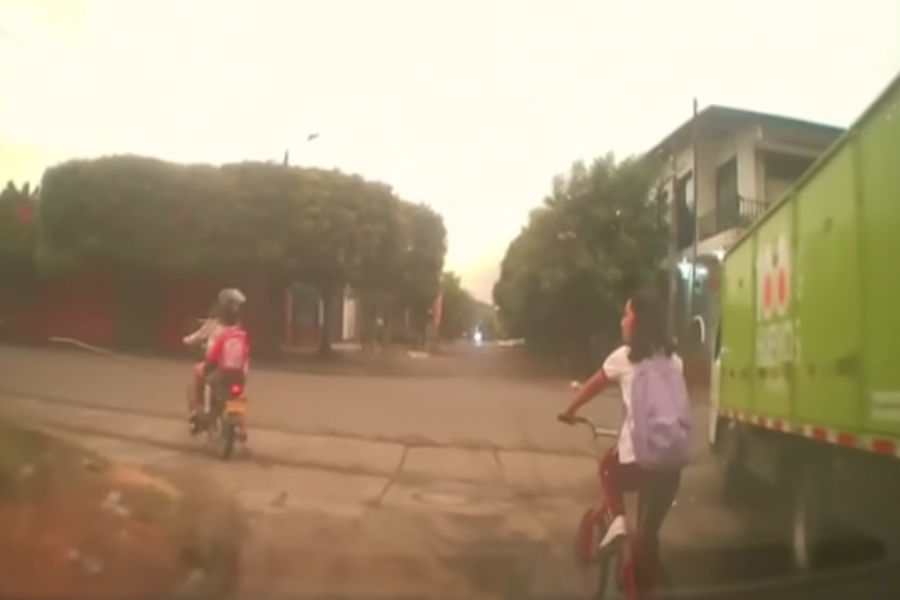 En el video se observa a la joven cuando es arroyada por un camión que prácticamente le pasa por encima de la humanidad, saliendo milagrosamente ilesa luego del accidente.