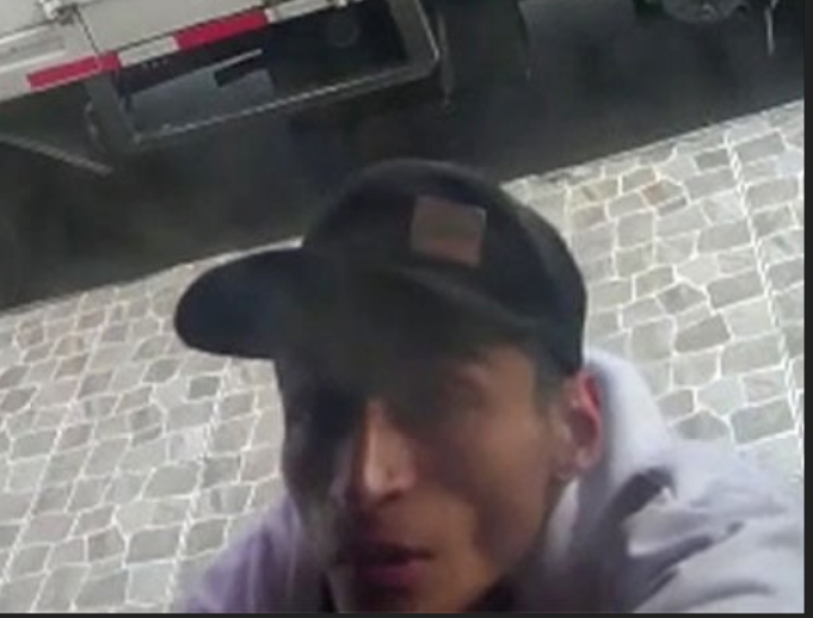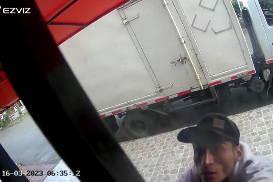 El hombre que portaba una gorra y un saco blanco con rojo, tiene que hacer un esfuerzo para subirse y lograr cometer el hurto en el que deja afectado el negocio de alimentos.