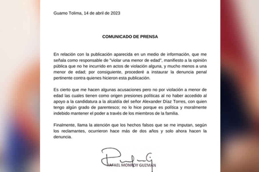 Se conoció que un medio de comunicación digital en su redes sociales y portal web realizó la publicación de una noticia en donde estaba involucrado el alcalde del Guamo por un supuesto abuso a una sobrina de su esposa.
