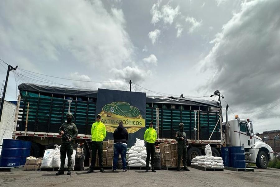 En el marco de la operación “Magnus”, la Policía Nacional de Colombia a través de la Dirección de Antinarcóticos, en coordinación con la Fiscalía General de la Nación, asestó un importante resultado en el municipio de Sopó, Cundinamarca, al capturar a una persona a quien se le incautó 6.611 galones de sustancias liquidas, 3.142 kilogramos de sustancias sólidas y un vehículo tipo tracto mula inmovilizado.