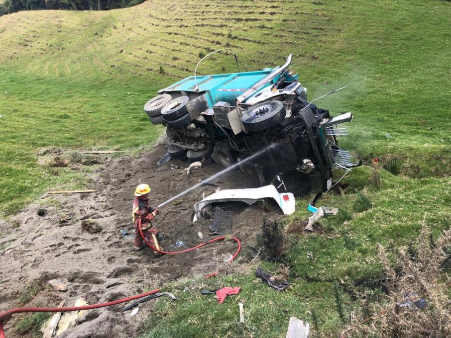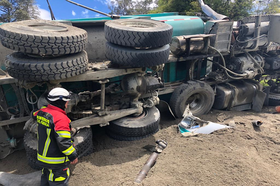 ¡Atención! Conductor se salvo de milagro luego que su volqueta sufrió volcamiento en la ruta Líbano - Manizales