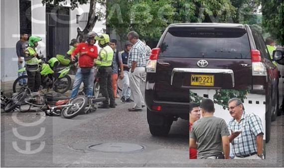 El accidente de tránsito ocurrió en el barrio Centro del municipio del Espinal, cuando el exfuncionario transitaba por la calle 14 con carrera 7 de esa población tolimense, donde chocó el vehículo Toyota Land-Cruiser Tx, color vino tinto, de placas MWO-221, matriculado en Ibagué, que era conducido por el exalcalde de Guamo, Rodrigo Ospitia, situación en la que se vieron comprometidas dos motocicletas, hecho que controlaron las autoridades de Tránsito de esa localidad.