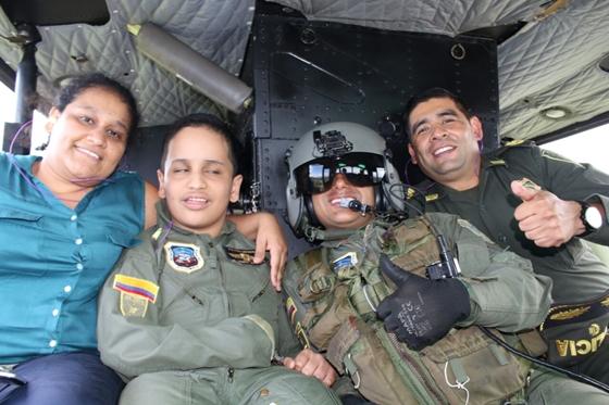 Gabriel Andrés fue recibido con honores y se inició el respetivo vuelo en un helicóptero por gran parte del territorio tolimense, acompañado por su señora madre y el Comandante de la Policía Metropolitana de Ibagué, Coronel, Jorge Hernando Morales Villamizar.