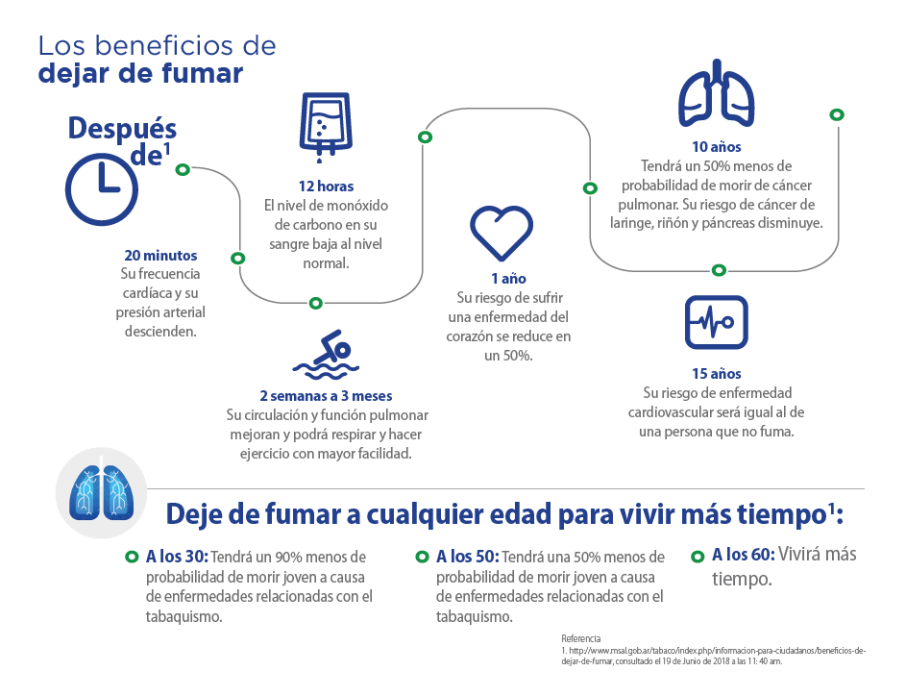 ● Después de 15 años: El riesgo de enfermedad cardiovascular es igual al de una persona que no fuma.