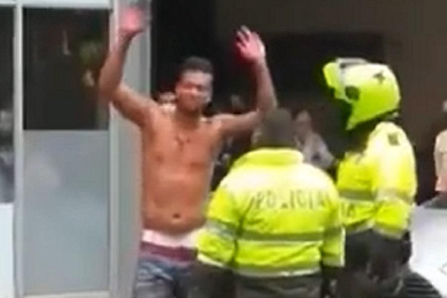Tras la llegada de los uniformados, Guarín continuó siendo agresivo y, en un video, se le ve sangrar, motivo por el cual fue llevado a un centro asistencial.