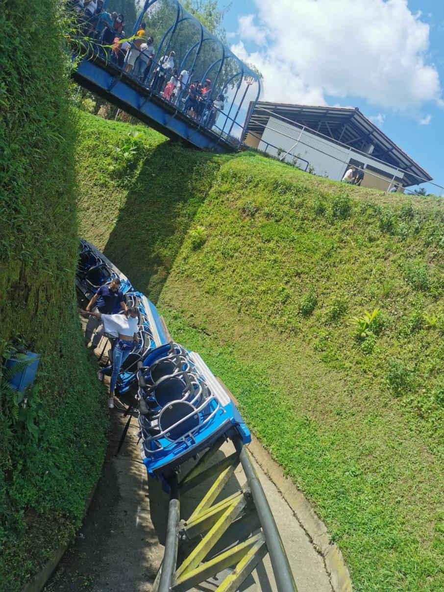 Una experiencia que nunca olvidarán, así vivieron los nueve pasajeros que de los dos vagones de la montaña rusa ‘azul’, del Parque del Café, cuando un bajón de electricidad provocó que los frenos de la atracción se activaran y provocaran una brusca reacción que dejó a tres personas heridas leves.